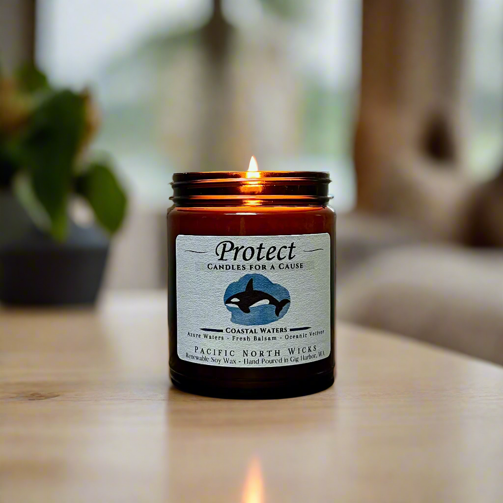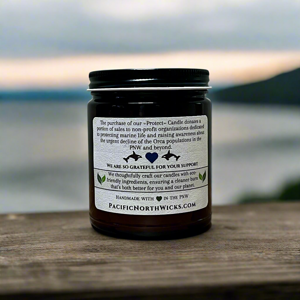 Each Protect Candle purchased here will donate 15% to The Orca Network, a nonprofit organization working diligently to protect our marine life and bring awareness to the dangers surrounding these magnificent mammals.