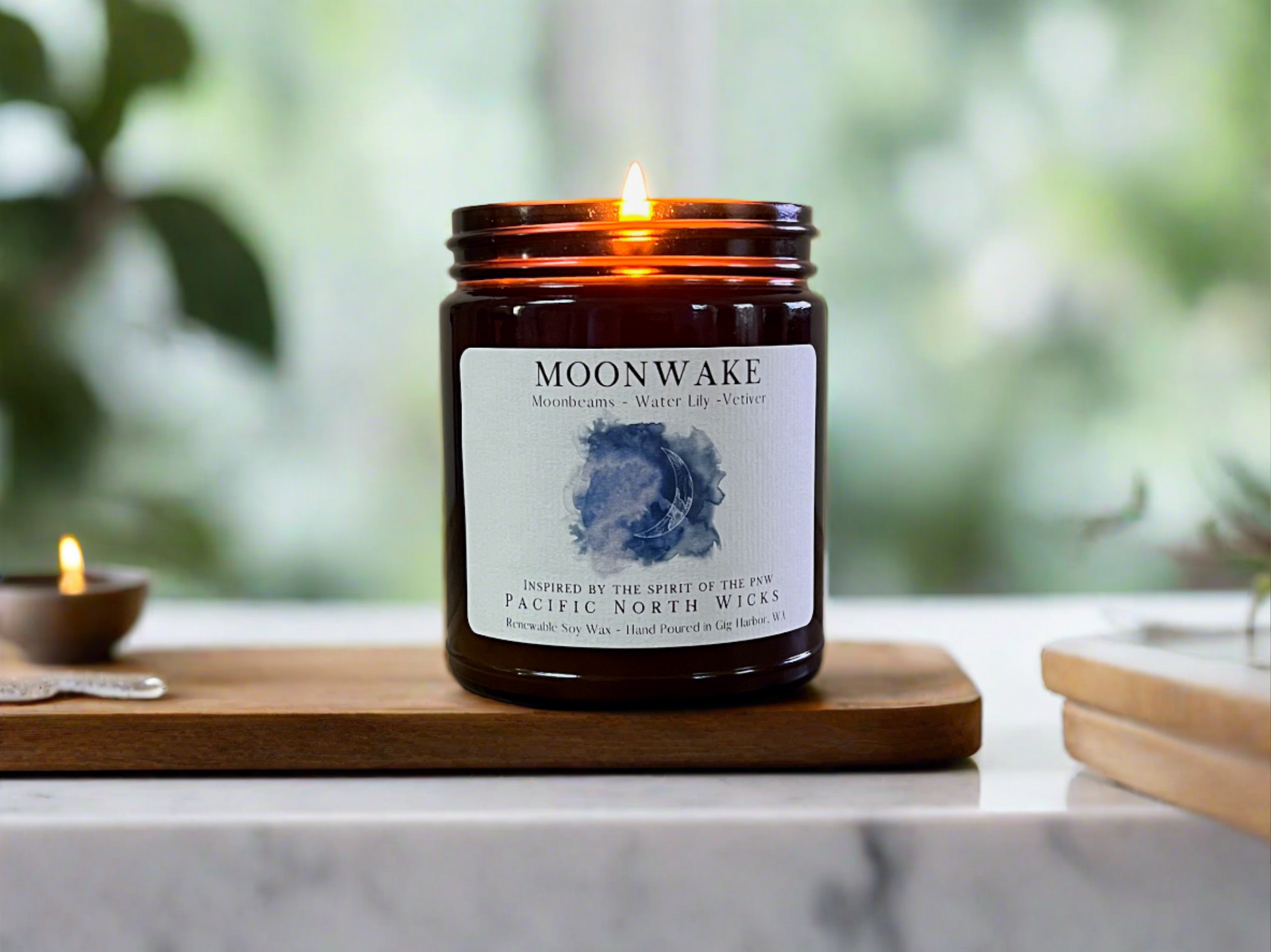 Our Moonwake candle was crafted to capture the essence of the ethereal beauty of moonlit waters here in the Pacific Northwest. With an exotic blend of subdued florals and marine aromatics, this fragrance is incredibly sexy and unique and will infuse your surroundings with the celestial allure of the moon.