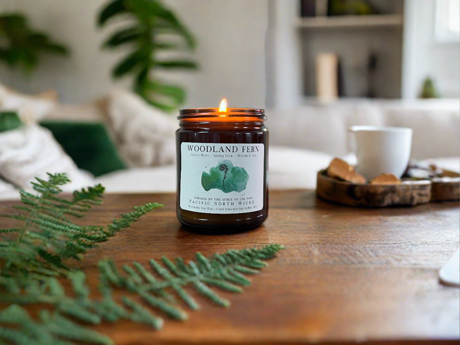 Our Woodland Fern Candle is like a burst of fresh greenery capturing the essence of the bright, dewy newness of springtime. This lush, green fragrance has an amazing scent throw. While a fabulous choice for a spring scent, our Woodland Fern Candle is enjoyable year-round.